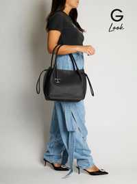 Shoulder bag Black Two top handles Drawstring closure Logo charm on the front Embossed logo on the front Contrasting stitching Silver tone metalware Grained leather Dimensions: 36x27x17 cm SKU: XBWBUZS9300WNTB999 Our Products Are 100% Genuine. In All Cases We Stand By The Authenticity Of Every Product Sold On Our Site. All sales are final and we only accept returns for quality issue. Buyer is responsible for any import tax/duty if applicable.