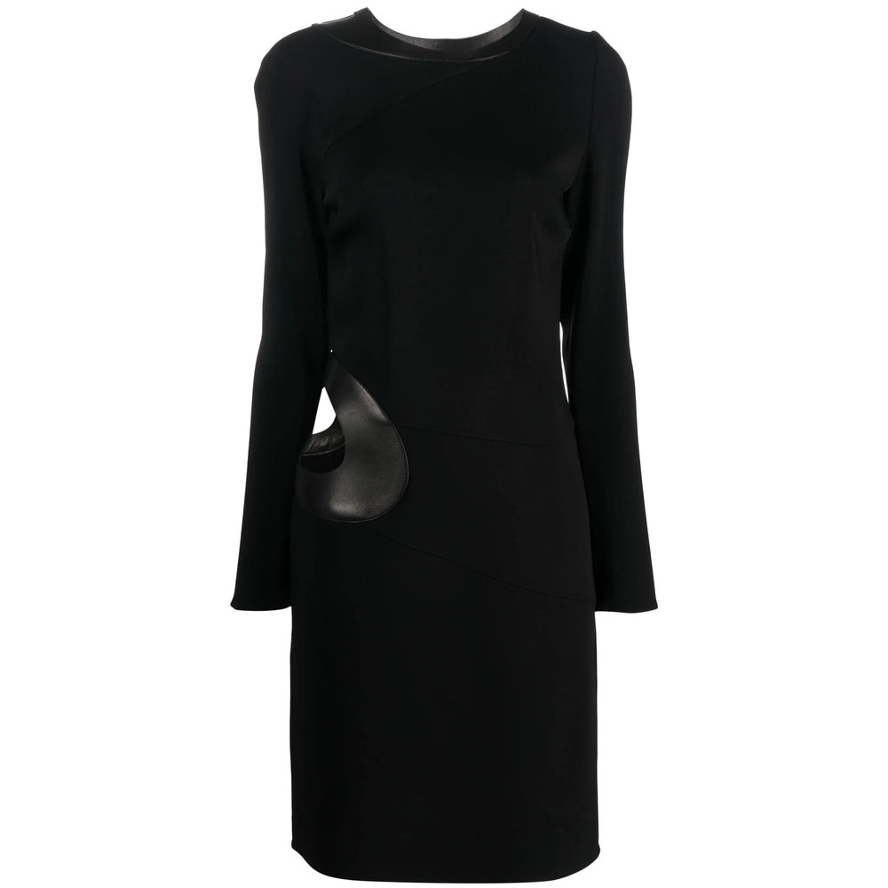 jet black stretch-design cut-out detailing leather trim round neck long sleeves straight hem knee-lengthMADE IN:ItalyMATERIAL:Viscose: 97.0%, Elastane: 3.0%, Lambskin: 100.0%COLOR:BLACK SKU: FAX575AB3242LB999 Our Products Are 100% Genuine. In All Cases We Stand By The Authenticity Of Every Product Sold On Our Site. All sales are final and we only accept returns for quality issue. Buyer is responsible for any import tax/duty if applicable.