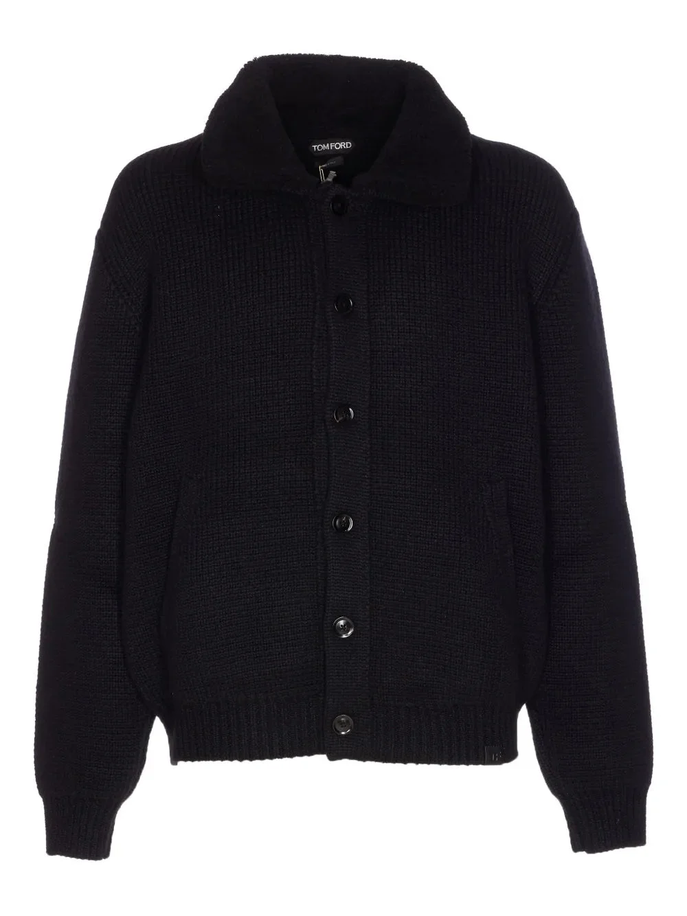 Tom Ford Men 3-Gauge Pure Cashmere Shearling Collar Cardigan