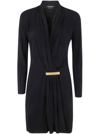 V-NECK LONG SLEEVE COCKTAIL DRESS WITH BAR DETAIL