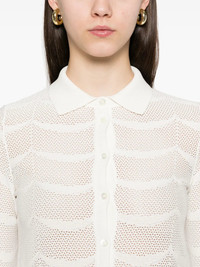 KNIT SHIRT WHITE COLOR FITTED KNIT SHIRT RIBBED NECK, CUFFS, BUTTONS AND BOTTOM DETAILS OF THE HALF MOON GEOMETRIC PATTERN MOTHER OF PEARL BUTTONS MADE OF CRESCENT SILK COTTON NET 14 GAUGE 57% COTTON 43% SILK ID CAK373YAX844 Cotton | `Material: 57%Cotton - 43%Silk / Button: 100%Mother of Pearl KG 0,5 Size Type: INT SKU: CAK373YAX844White Our Products Are 100% Genuine. In All Cases We Stand By The Authenticity Of Every Product Sold On Our Site. All sales are final and we only accept returns for quality issue. Buyer is responsible for any import tax/duty if applicable.
