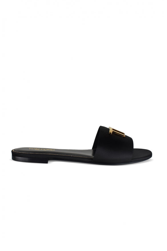 <p>Tom Ford sandals in black leather. Embossed gold metal “TF” logo on front strap. Round open toe. Leather sole. Made in Italy.</p> Size Type: IT SKU: P00975620 Our Products Are 100% Genuine. In All Cases We Stand By The Authenticity Of Every Product Sold On Our Site. All sales are final and we only accept returns for quality issue. Buyer is responsible for any import tax/duty if applicable.