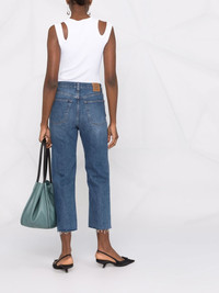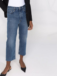 Blue cotton cropped straight-leg jeans from TOTEME featuring whiskering effect, front button fastening, belt loops, classic five pockets and cropped. Size Type: Jeans W/L SKU: 221235747417 Our Products Are 100% Genuine. In All Cases We Stand By The Authenticity Of Every Product Sold On Our Site. All sales are final and we only accept returns for quality issue. Buyer is responsible for any import tax/duty if applicable.