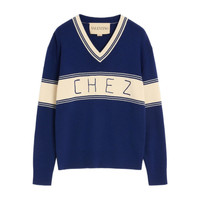 navy blue Chez Jacquard motif on chest and back stripe detailing V-neck long sleeves MADE IN:ItalyMATERIAL:Cotton: 10.0%, Wool: 90.0%COLOR:BLUE SKU: 7V3KC34KB02CMV Our Products Are 100% Genuine. In All Cases We Stand By The Authenticity Of Every Product Sold On Our Site. All sales are final and we only accept returns for quality issue. Buyer is responsible for any import tax/duty if applicable.