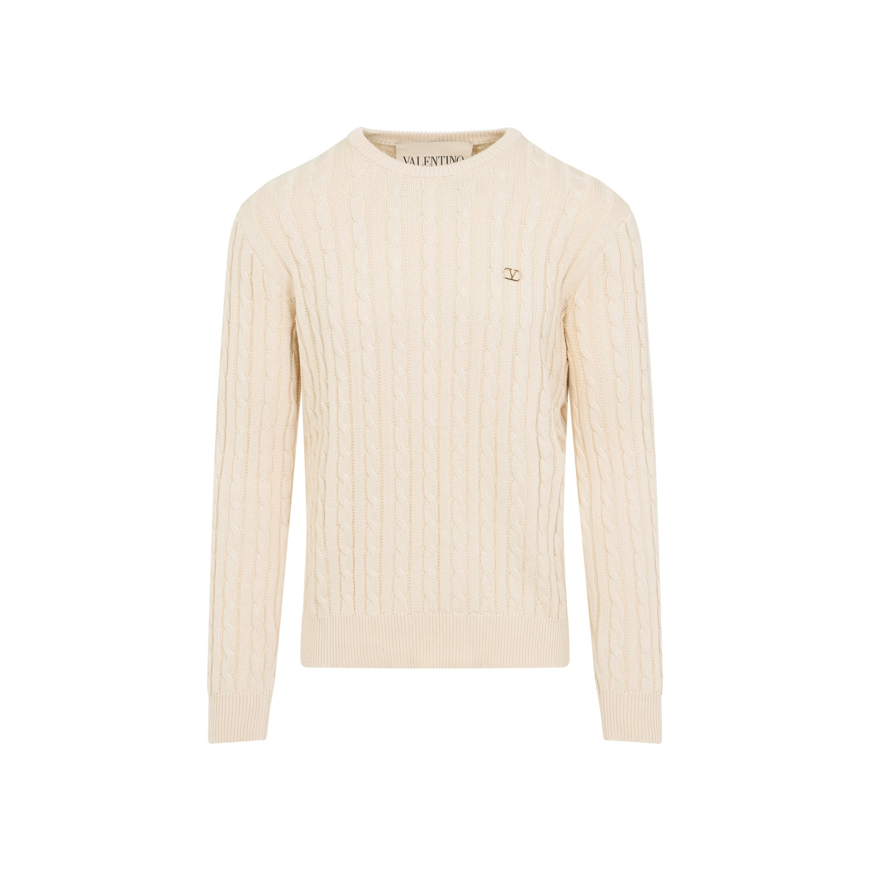 Valentino Ivory Cotton Pullover. Crafted from ivory cable-knit cotton, round neckline, long sleeves, metal Vlogo placed at the chest, straight hem, ribbed edges. Cotton | 100%COTTON Size Type: INT SKU: 7V3KC34SB1BWhite Our Products Are 100% Genuine. In All Cases We Stand By The Authenticity Of Every Product Sold On Our Site. All sales are final and we only accept returns for quality issue. Buyer is responsible for any import tax/duty if applicable.