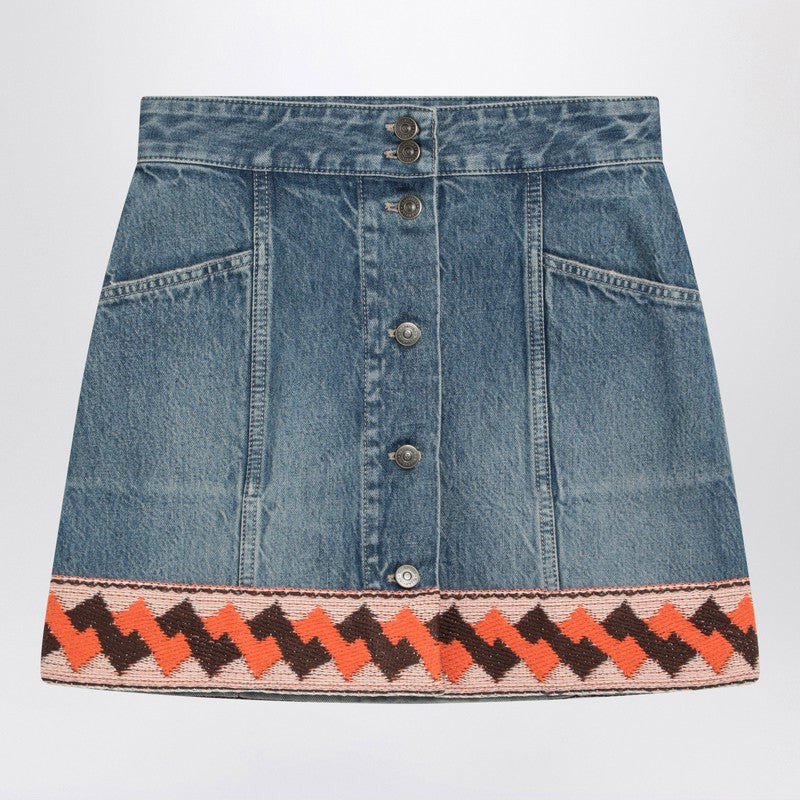 Valentino Denim Mini Skirt With Jacquard Trim Women