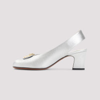 Valentino Garavani Silver Leather Adamantine T.60 Slingback. Pure silver leather pumps, squared toe, top gold-tone metallic shell with crystal details, sling back design, wide heels, side gold-tone metallic signature V logo. Leather | 100%LEATHER 100%TEXTILE Heel Hight: 6cm Size Type: IT SKU: 7W2S0MJ8PHIMetallic Our Products Are 100% Genuine. In All Cases We Stand By The Authenticity Of Every Product Sold On Our Site. All sales are final and we only accept returns for quality issue. Buyer is responsible for any import tax/duty if applicable.