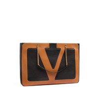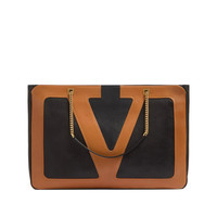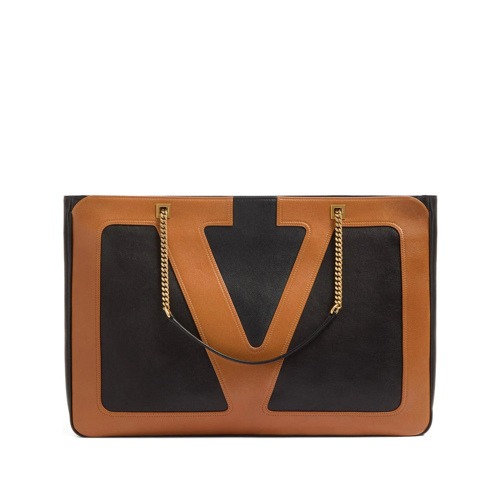 black/camel brown calf leather maxi VLogo Signature leather and chain-link shoulder strap rear zip fastening top zip fastening main compartment gold-tone hardware MADE IN:ItalyMATERIAL:Outer Composition Nappa Leather: 100.0%COLOR:BLACK SKU: 6Y2B0D31ELHRFA Our Products Are 100% Genuine. In All Cases We Stand By The Authenticity Of Every Product Sold On Our Site. All sales are final and we only accept returns for quality issue. Buyer is responsible for any import tax/duty if applicable.