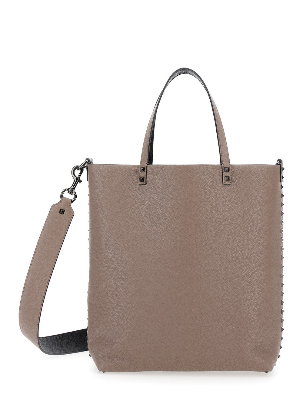 Valentino Garavani Men Beige Tote Bag With Rockstuds In Grained Leather Man