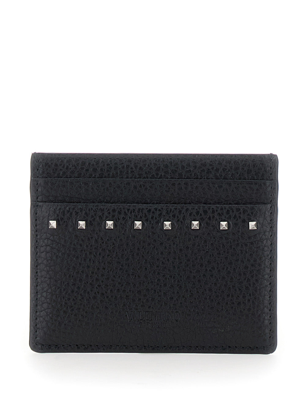 Valentino Garavani Men Black Card Holder With Rockstud Embellishments In Leather Man