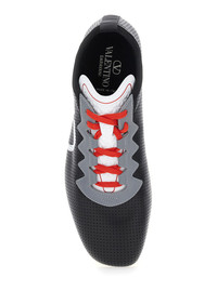 Valentino Garavani Men Black Sneakers With Asymmetric Toe And Vlogo Detail On The Side In Tech Fabri