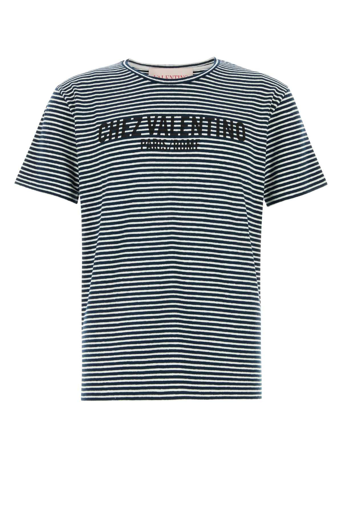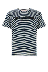 STRIPED COTTON T-SHIRT WITH CHEZ VALENTINO PRINT