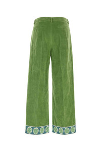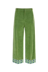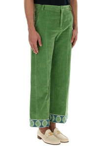WASHED COTTON-LINEN VELVET PANTS WITH JACQUARD HEMS