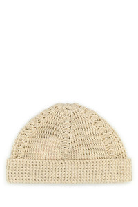 Valentino Garavani Men Sand Cotton Knitted Vlogo Signature Beanie Hat