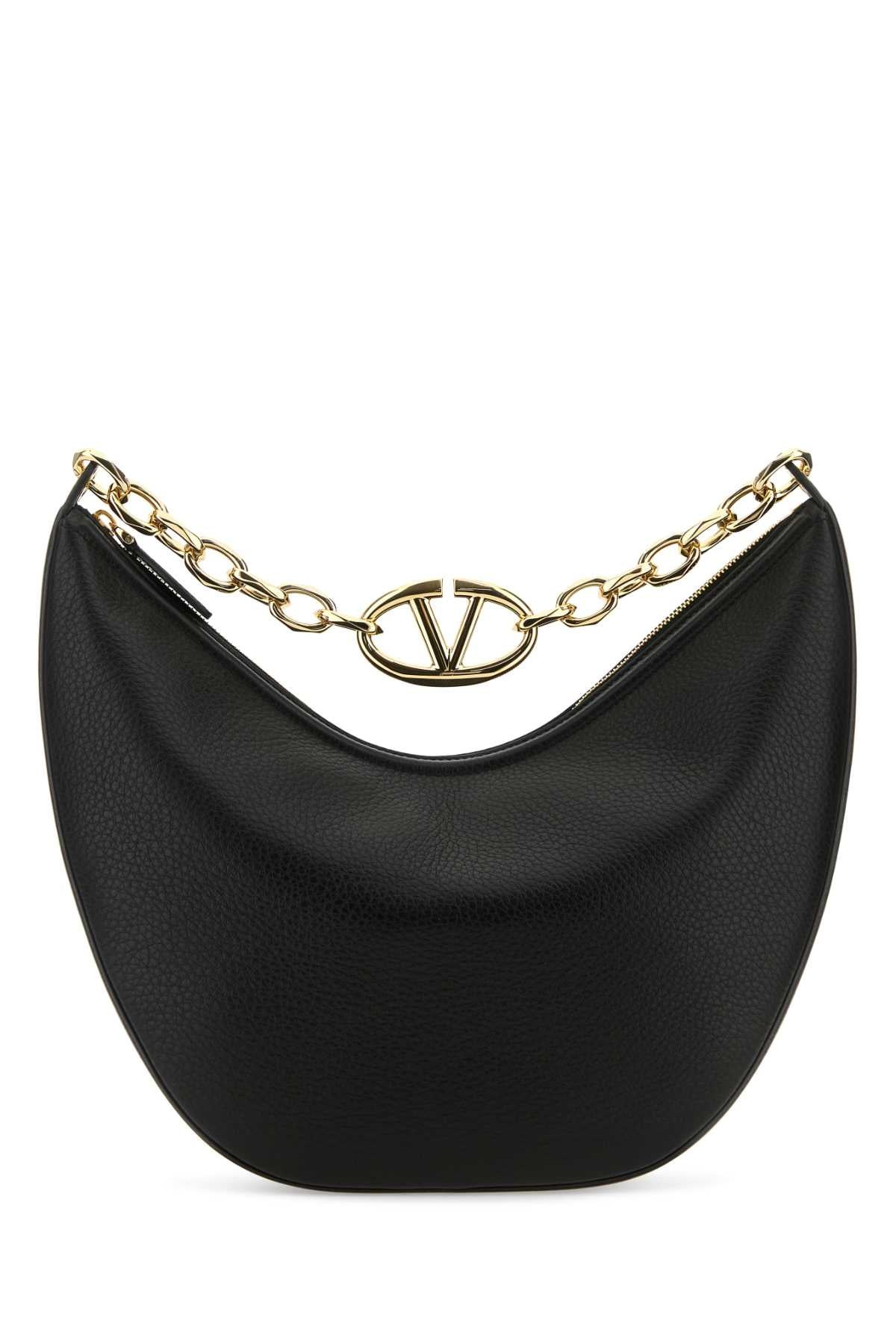 Valentino Garavani Women Black Leather Medium Hobo Vlogo Moon Shoulder Bag