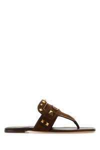Valentino Garavani Women Brown Suede Plaster Caster Thong Slippers