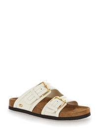 Slide Inner fussbett Round open toe Two bands with adjustable buckles Slip on Tone on tone stitchings Rubber sole Gold metalware White Leather Height heel: 3 cm SKU: 4W0S0IZ4VRNYVR Our Products Are 100% Genuine. In All Cases We Stand By The Authenticity Of Every Product Sold On Our Site. All sales are final and we only accept returns for quality issue. Buyer is responsible for any import tax/duty if applicable.