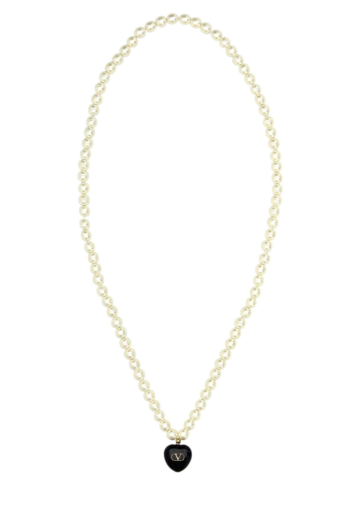 Valentino Garavani Women Ivory Pearls Coeur Royal Necklace