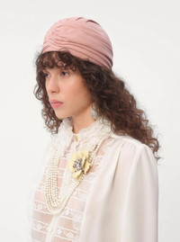 Valentino Garavani Women Pink Headdress Hat With Asymmetrical Design In Pink Virgin Wool Woman