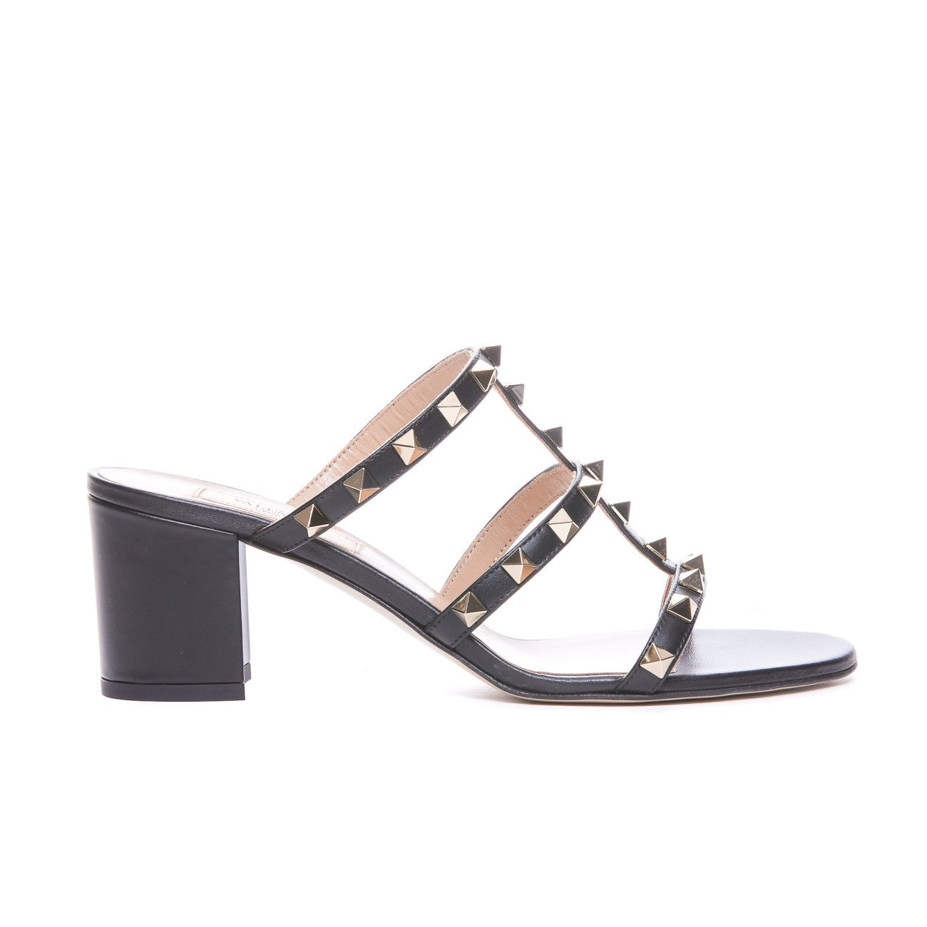 ROCKSTUD CALFSKIN LEATHER SLIDE SANDAL 60 MM