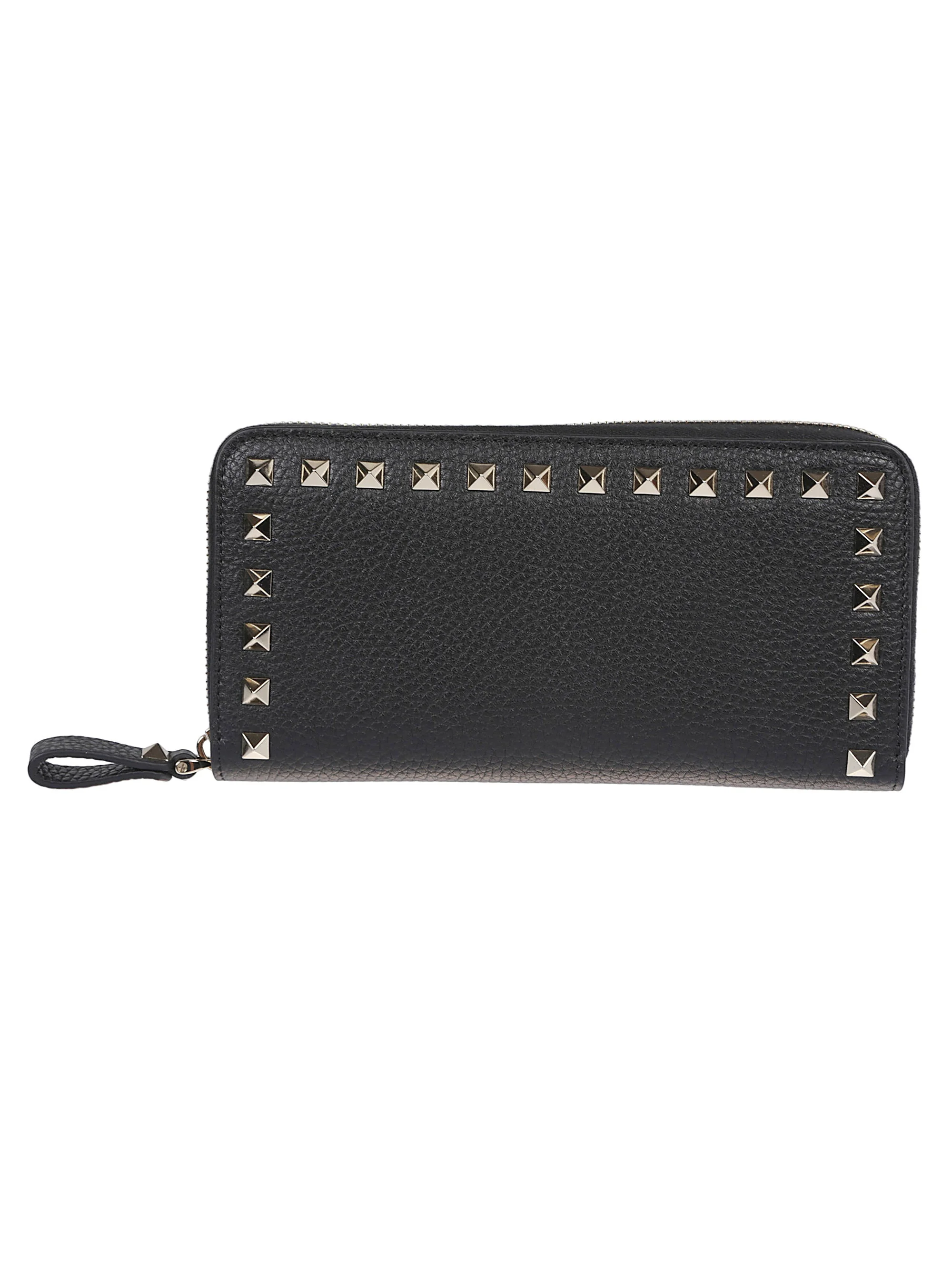ROCKSTUD GRAINY CALFSKIN ZIPPERED WALLET