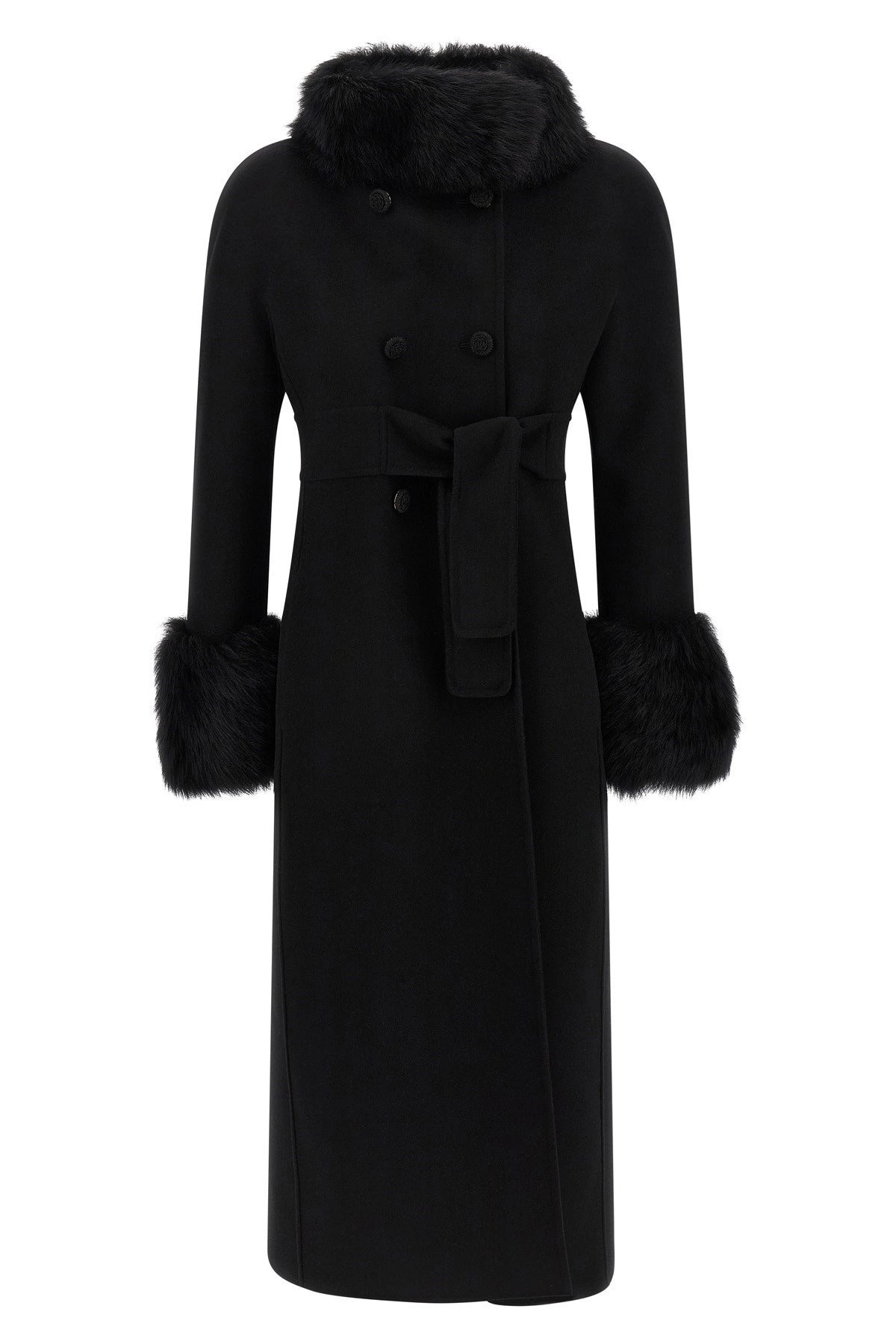 Compact Drap virgin wool and cashmere coat with shearling inserts, double-breasted style with front soutache button closure, high neck, pockets, long cuffed sleeves, lining, belt. Color: Black Size & Fit: true to size fit Composition: 90% virgin wool 10% cashmere Made in: Italy SKU: B3CA7Y06JA0NO Our Products Are 100% Genuine. In All Cases We Stand By The Authenticity Of Every Product Sold On Our Site. All sales are final and we only accept returns for quality issue. Buyer is responsible for any import tax/duty if applicable.