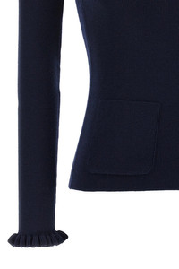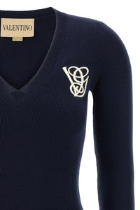 Valentino Garavani wool sweater with dense weave, front logo embroidery, V-neck, front pockets, long sleeves with ruffles on the cuffs. Color: Blue Size & Fit: True to size fit Composition: 100% virgin wool Made in: Italy SKU: B3KC67I9H7BBE Our Products Are 100% Genuine. In All Cases We Stand By The Authenticity Of Every Product Sold On Our Site. All sales are final and we only accept returns for quality issue. Buyer is responsible for any import tax/duty if applicable.