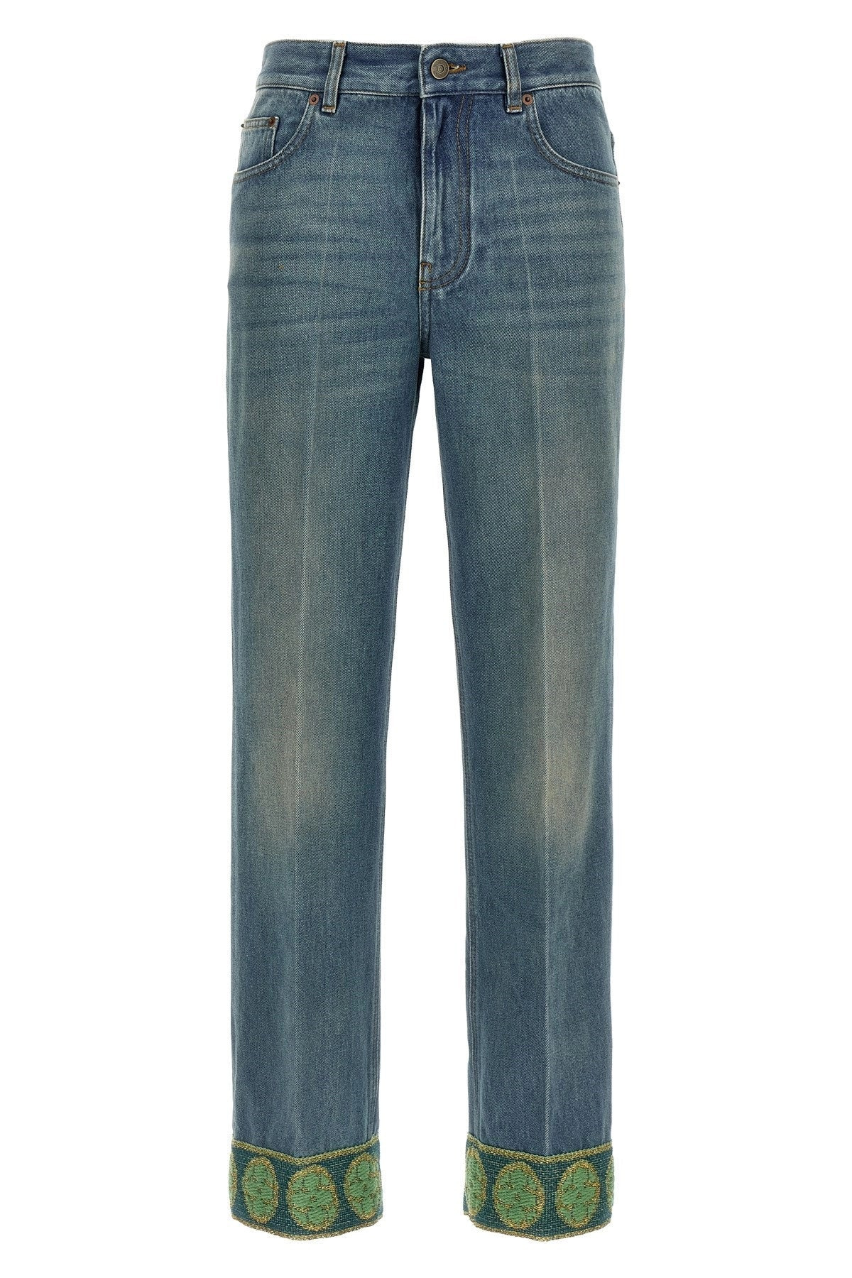 DENIM TROUSERS WITH JACQUARD TRIMS