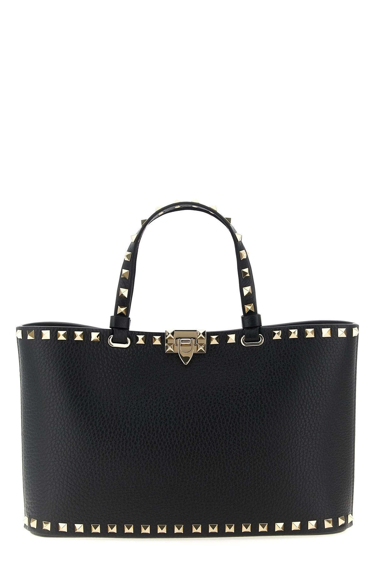 Small 'Rockstud' shopping bag in garnet calfskin with metal stud applications, double fixed handle, hook closure, adjustable and removable leather shoulder strap. Color: Black Size & Fit: W 28 x H 18.5 x D 7 cm Composition: 100% calfskin leather (Bos Taurus) Made in: Italy SKU: W2B0S20VSF0NO Our Products Are 100% Genuine. In All Cases We Stand By The Authenticity Of Every Product Sold On Our Site. All sales are final and we only accept returns for quality issue. Buyer is responsible for any import tax/duty if applicable.
