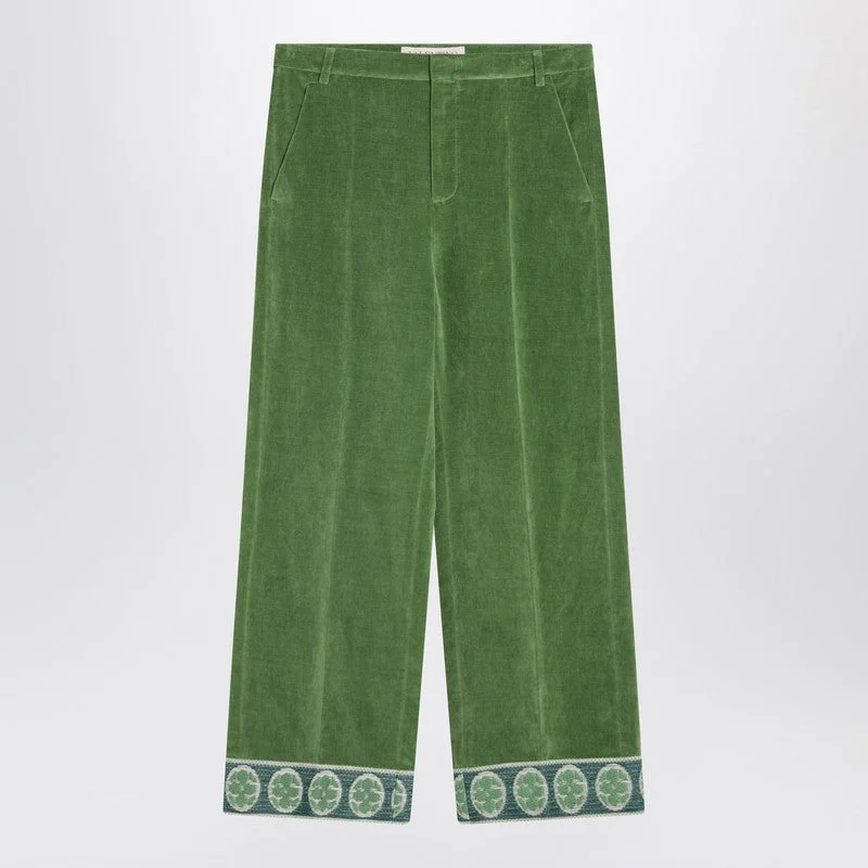 Valentino Green Velvet Trousers With Jacquard Hem Men