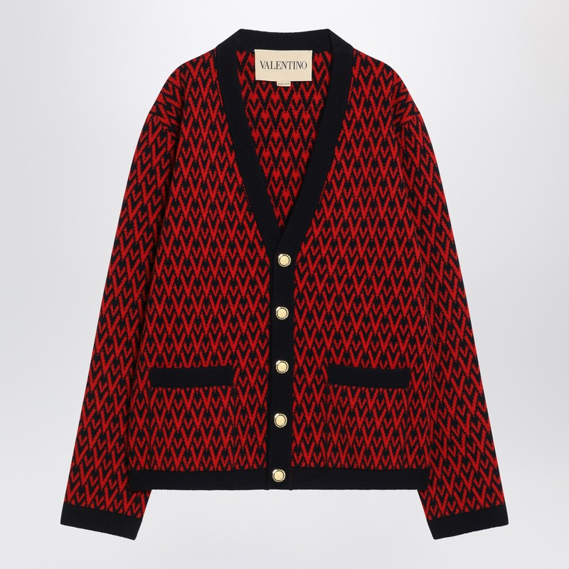 Valentino Jacquard Patterned Cardigan Toute La V Red/Navy Blue Size Type: INT Material: Wool SKU: 7V3KA04IAR1/RVALEBR5323 Our Products Are 100% Genuine. In All Cases We Stand By The Authenticity Of Every Product Sold On Our Site. All sales are final and we only accept returns for quality issue. Buyer is responsible for any import tax/duty if applicable.