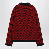 Valentino Jacquard Patterned Cardigan Toute La V Red/Navy Blue Men