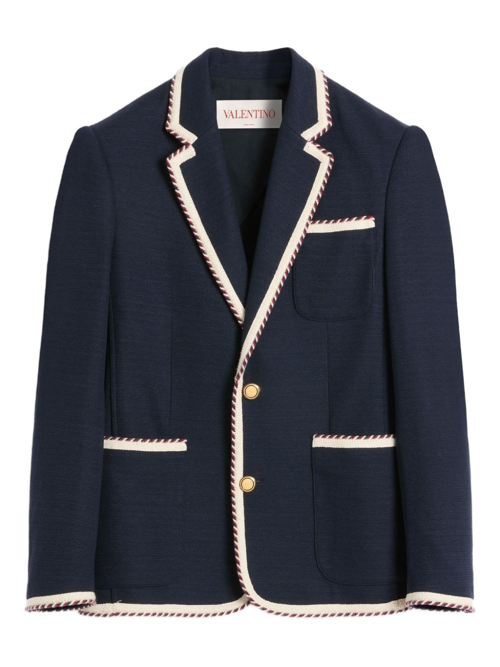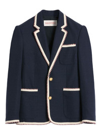 SINGLE-BREASTED JERSEY COTTON JACKET WITH TORCHON PIPING