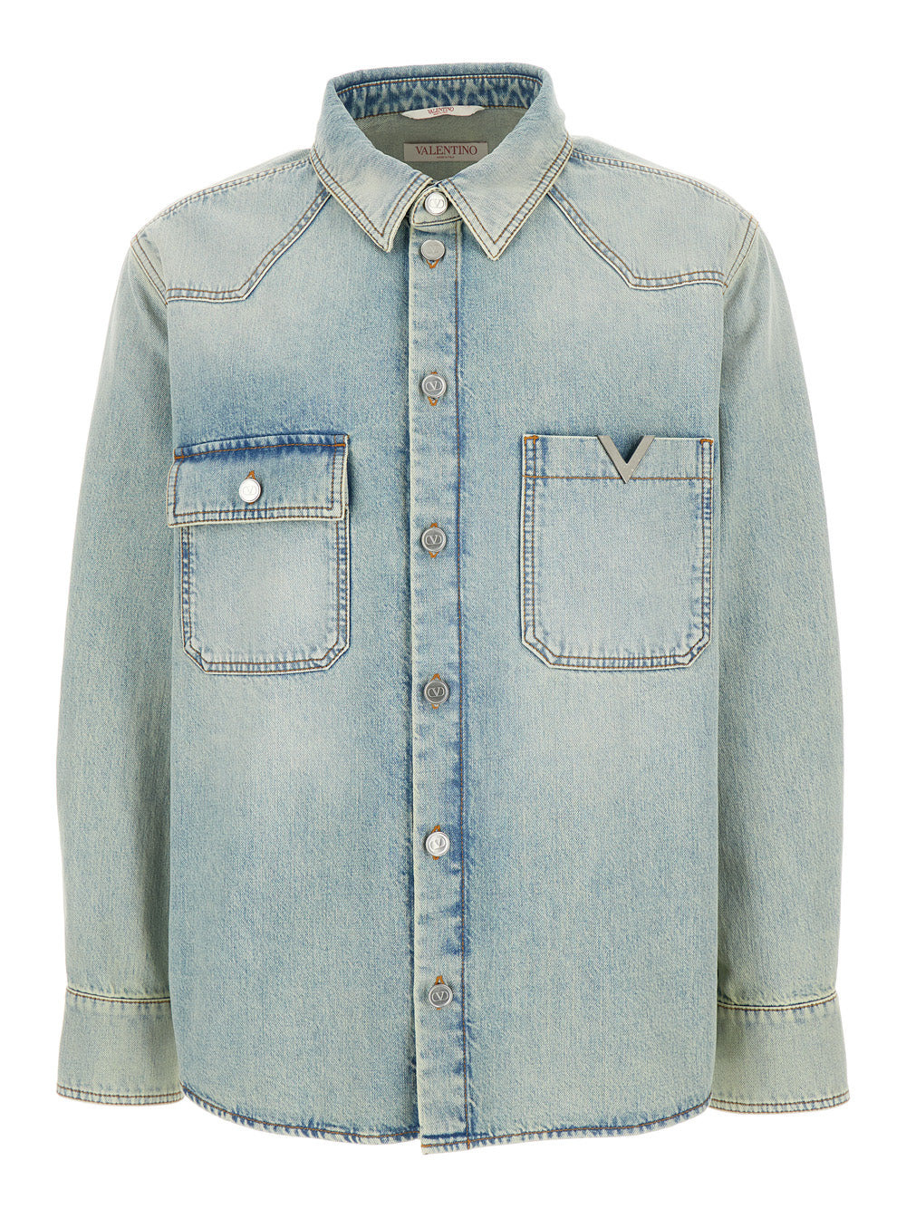 Valentino Men Light-Blue Denim Shirt With Logo In Cotton Man