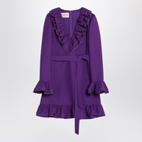 Mini dress by Valentino in virgin wool and purple silk, characterized by a V-neck with ruffles, long sleeves with cuffs with small frills, adjustable waist belt, and hem with frills. Model wears size 38 IT Model measurements: Height: 179 cm Chest: 82 cm Waist: 65 cm Hips: 90 cm Size Type: IT Material: Wool SKU: 6B3VAES61CF/QVALER1B102 Our Products Are 100% Genuine. In All Cases We Stand By The Authenticity Of Every Product Sold On Our Site. All sales are final and we only accept returns for quality issue. Buyer is responsible for any import tax/duty if applicable.