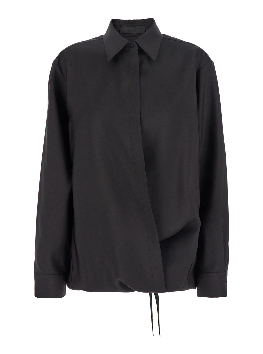 Shirt Black Classic collar Long sleeves Hidden front button closure Back knot closure Buttoned cuffs Wool blend Oversize fit SKU: 5B0AB6T58Y10NO Our Products Are 100% Genuine. In All Cases We Stand By The Authenticity Of Every Product Sold On Our Site. All sales are final and we only accept returns for quality issue. Buyer is responsible for any import tax/duty if applicable.