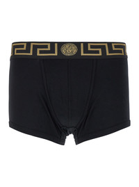 Versace Men Black Boxer Briefs With Greca And Medusa Detail In Stretch Cotton Man