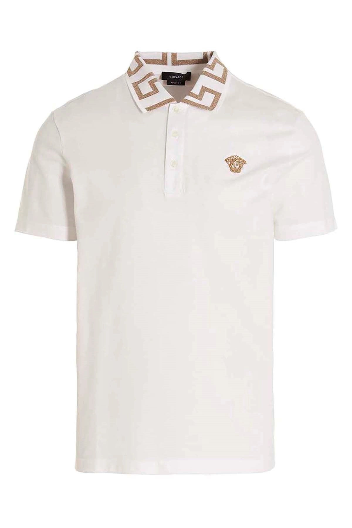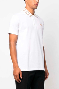 Pique cotton polo shirt with 'Greca' detail on the collar, front logo embroidery and short sleeves. Color: White Size & Fit: True to size fit Composition: 100% cotton Made in: Tunisia SKU: A874021A061991W000 Our Products Are 100% Genuine. In All Cases We Stand By The Authenticity Of Every Product Sold On Our Site. All sales are final and we only accept returns for quality issue. Buyer is responsible for any import tax/duty if applicable.