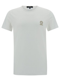 Versace Men White Crewneck T-Shirt With Medusa Print On The Front In Cotton Stretch Man