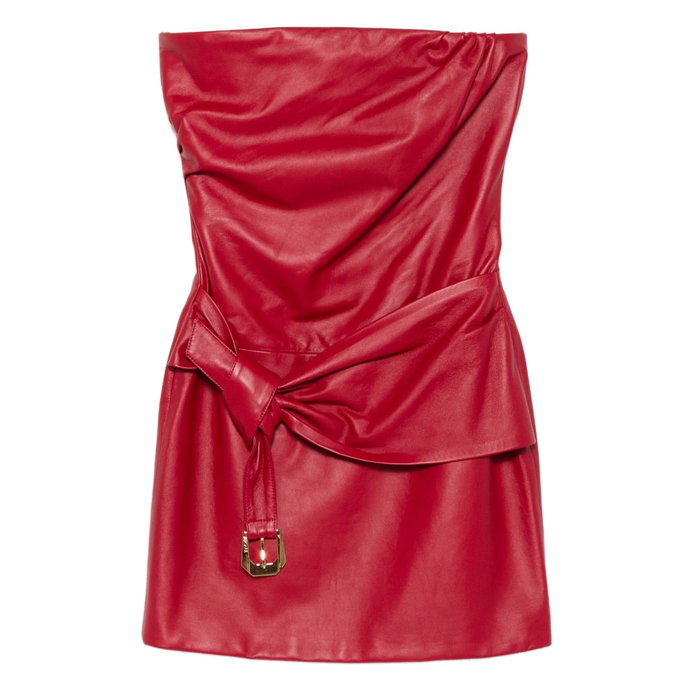 red strapless neckline leather belted waist gathered detail MADE IN:ItalyMATERIAL:Lining Composition Polyamide: 100.0%, Lining Composition Cupro: 100.0%, Outer Composition Lambskin: 100.0%COLOR:RED SKU: 1A1472210208641RC40 Our Products Are 100% Genuine. In All Cases We Stand By The Authenticity Of Every Product Sold On Our Site. All sales are final and we only accept returns for quality issue. Buyer is responsible for any import tax/duty if applicable.