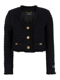Jacket U neckline Long sleeves Front button closure Jewel buttons Gold tone metalware Two front welt pockets with Medusa detail Crop style Black Tweed Regular fit SKU: 10157441A100961B000 Our Products Are 100% Genuine. In All Cases We Stand By The Authenticity Of Every Product Sold On Our Site. All sales are final and we only accept returns for quality issue. Buyer is responsible for any import tax/duty if applicable.