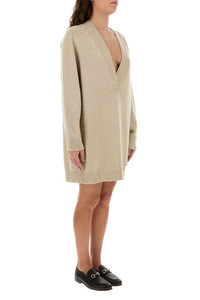 Versace Women Melange Beige Wool Blend Sweater Dress