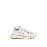 Versace Trigreca sneakers in technical fabric with multilayer inserts, leather details and contrasting Barocco print. Trekking laces, Trigreca lettering on the tongue and heel, side print of Milan coordinates, Versace print on the front and side, front print with the Greek Key. Fabric interior with removable insole, rubber sole with side and back logo featuring the "Greca Cushioning System" made with the Greca motif on the sides, center and bottom with the iconic Medusa head in contrasting rubber. Extra soles included. Material: 100% Polyester, 100% calfskin leather, 100% rubber Size Type: IT SKU: 298574441 This is a final sale clearance product. Our Products Are 100% Genuine. In All Cases We Stand By The Authenticity Of Every Product Sold On Our Site. All sales are final and we only accept returns for quality issue. Buyer is responsible for any import tax/duty if applicable.
