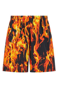 Cotton bermuda shorts with graphic 'Black & Orange Fire' print, adjustable drawstring elastic waistband, pockets, wide leg. Color: Multicolor Size & Fit: true to size fit Composition: 100% cotton Made in: Italy SKU: UA66SS400XFIREPRINT Our Products Are 100% Genuine. In All Cases We Stand By The Authenticity Of Every Product Sold On Our Site. All sales are final and we only accept returns for quality issue. Buyer is responsible for any import tax/duty if applicable.