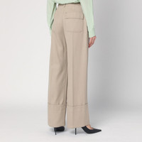 Wide trousers by Victoria Beckham in virgin wool almond colour, characterized by a high waist, front pleats, two side welt pockets, one applied pocket on the back with flap, front closure with zip and hook, and a wide hem at the bottom of the leg. Model wears size 8 UK Model measurements: Height: 178 cm Chest: 77 cm Waist: 60 cm Hips: 87 cm Size Type: UK Material: Wool SKU: 1125WTR006059AWO/QVIBECAL111 Our Products Are 100% Genuine. In All Cases We Stand By The Authenticity Of Every Product Sold On Our Site. All sales are final and we only accept returns for quality issue. Buyer is responsible for any import tax/duty if applicable.