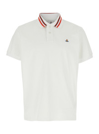 Vivienne Westwood Men White Polo Shirt With Contrasting Collar And Orb Logo Detail On The Front In C