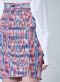 check weave rouched side panel skirt