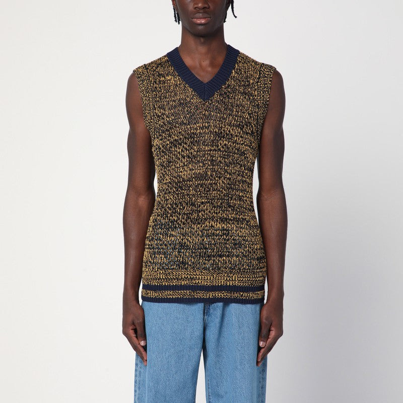 Wales Bonner Navy Blue/Yellow Textured Vest In A Cotton Blend Men