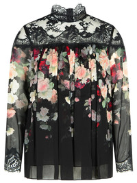 lace-trimmed floral blouse