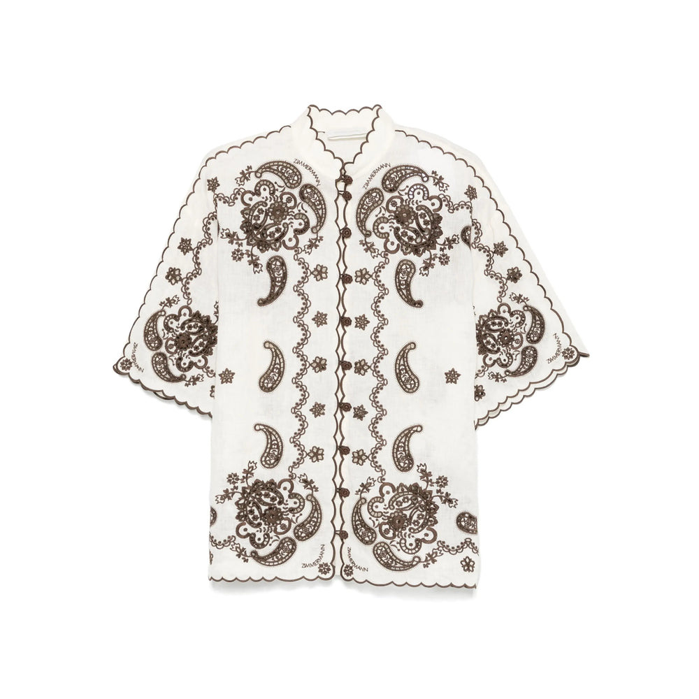 light beige front button fastening embroidered design mock neck short sleeves MADE IN:ChinaMATERIAL:Linen/flax: 100.0%, Polyester: 100.0%COLOR:NEUTRALS SKU: 3287TSS253IVOCH Our Products Are 100% Genuine. In All Cases We Stand By The Authenticity Of Every Product Sold On Our Site. All sales are final and we only accept returns for quality issue. Buyer is responsible for any import tax/duty if applicable.